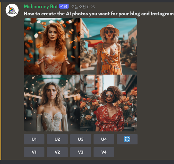 지금부터 “블로그와 인스타그램에 내가 원하는 AI 사진 만드는 방법”으로 미드저니에서 이미지를 만들겁니다.